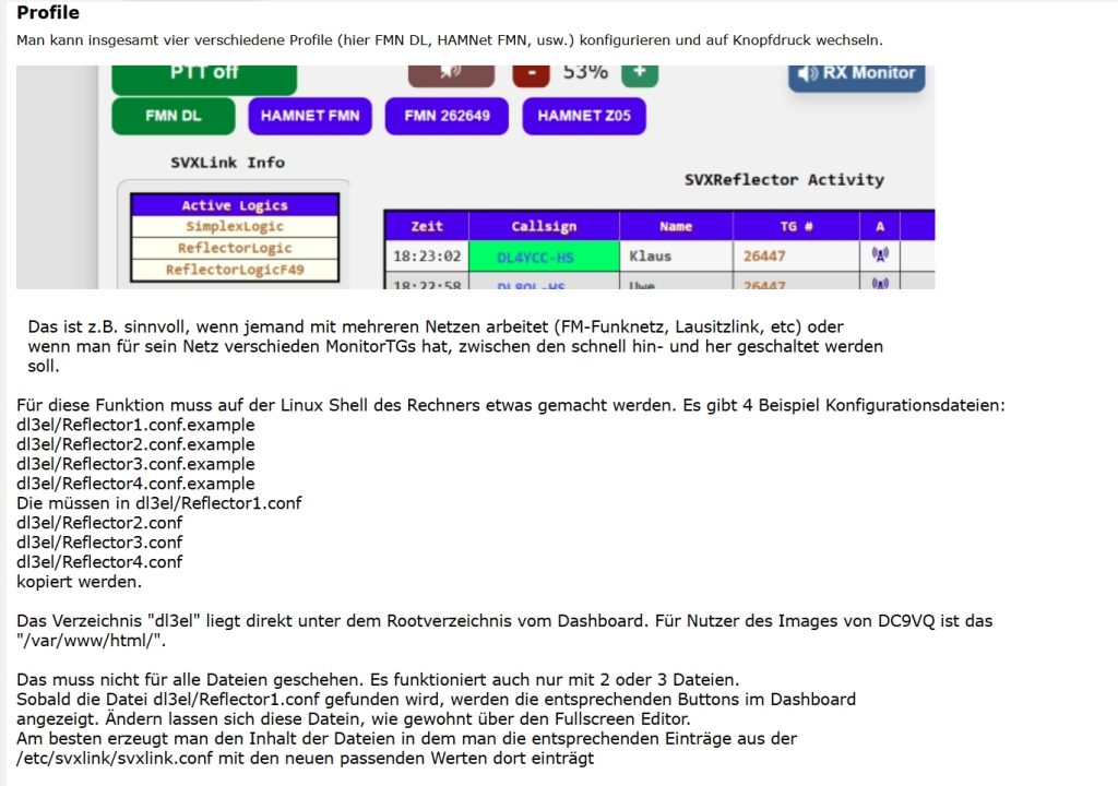 – ein neues Profil anlegen (beschrieben in der Hilfe zum Dashboard, Pkt 3.4