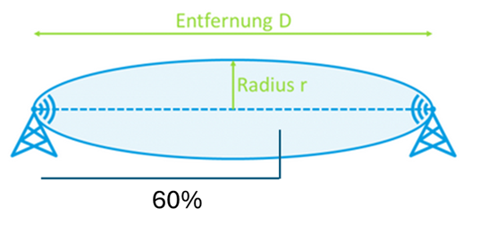Es reicht nicht, dass man das Ziel nur „sieht“! Ein ellipsenförmiger Bereich um die Sichtlinie muss frei von Hindernissen sein, um Signalverluste durch Beugung zu vermeiden.