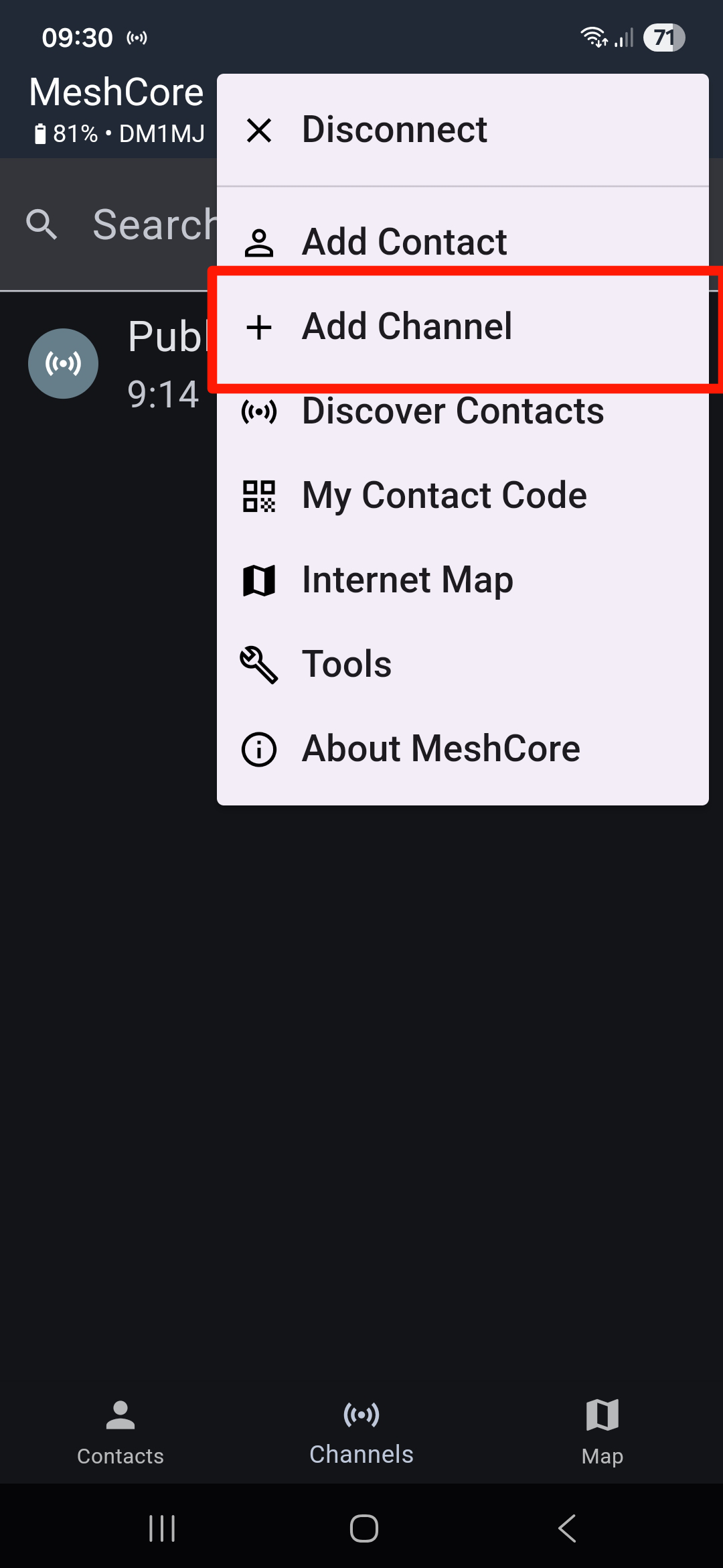 Eigene Kanäle können in der App erstellt werden, erfordern dann aber den Austausch des geteilten Schlüssels mit anderen Nutzen von Meshcore, ansonsten bleibt man alleine in seinem #Kanal.