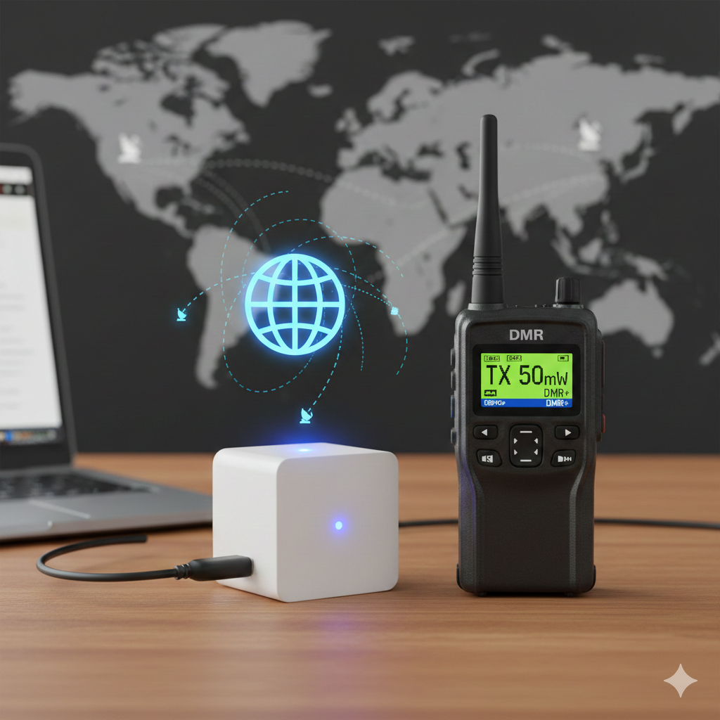 Internet-Brücke: Über eine Software (meist Pi-Star) leitet der Hotspot die Sprachdaten in das weltweite DMR-Netz (z. B. BrandMeister) weiter.
